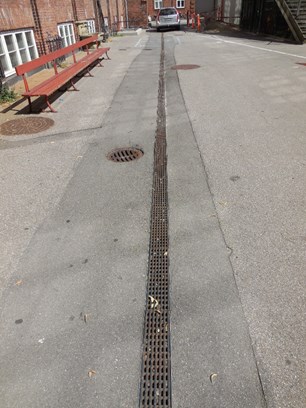 Der er etableret opkanter på kældernedgange og højvandslukket i afløbet fra kældernedgangen.